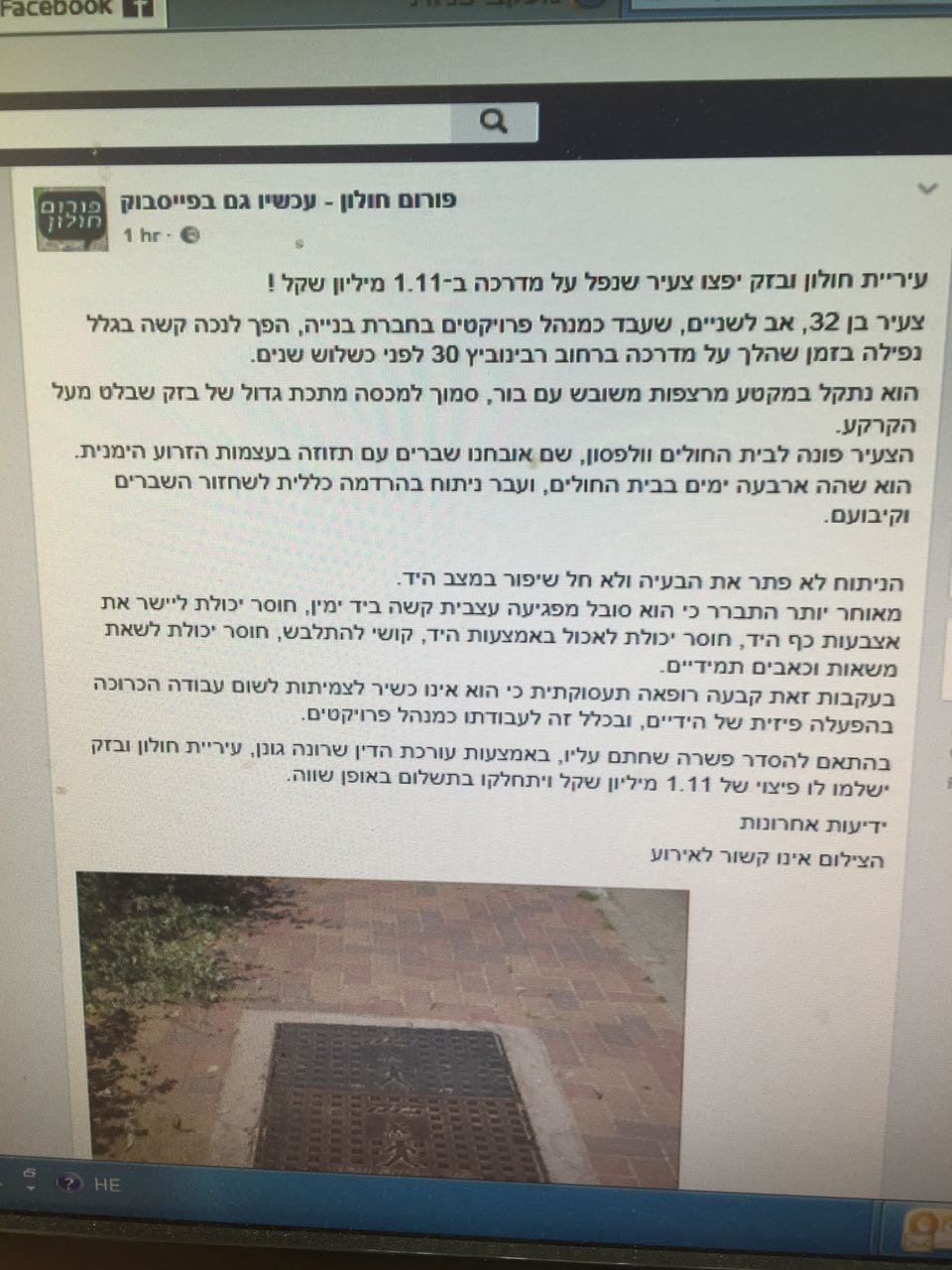 נפילות בגין מפגעים במקומות ציבוריים כולל בגין מפגעים בשבילים, כבישים ומדרכות , מגרשי ספורט וגני משחקים